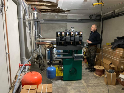 On December 4, 2019 - Boiler connected up and the chimney being installed... closer to heat...