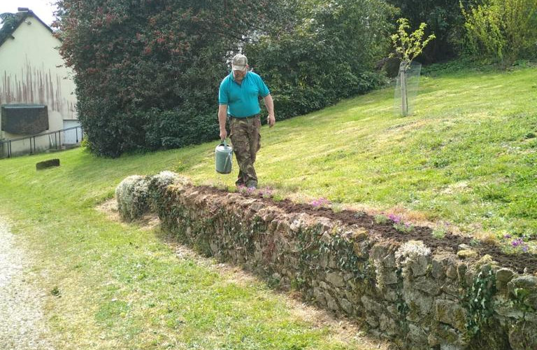 On May 12, 2021 - We are sure that these are purpose built plant wells along the south side of the chateau. There are hooks all along the wall that we think were meant to hold vines or wire. Paul has been exploring and once he weeded and cleared out the planter he found it actually goes into soil beneath the concrete which seems to be retaining water. I asked for grapes to be planted. I thought about wisteria but then dreamt of a grape covered pergola where we can dine and drink wine. Doesn’t that sound romantic? He added plenty of compost and he will keep an eye on it and water when needed. We are able to plant up to 4 more vines. Any suggestions? We now have a Table Chasselas Dore B. I think it’s an ancient white variety that is a popular table grape and wine grape.